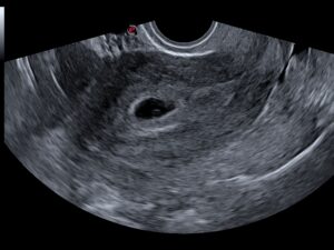 At approximately 5 -6 weeks, we start to see the yolk sac in the gestation sac.